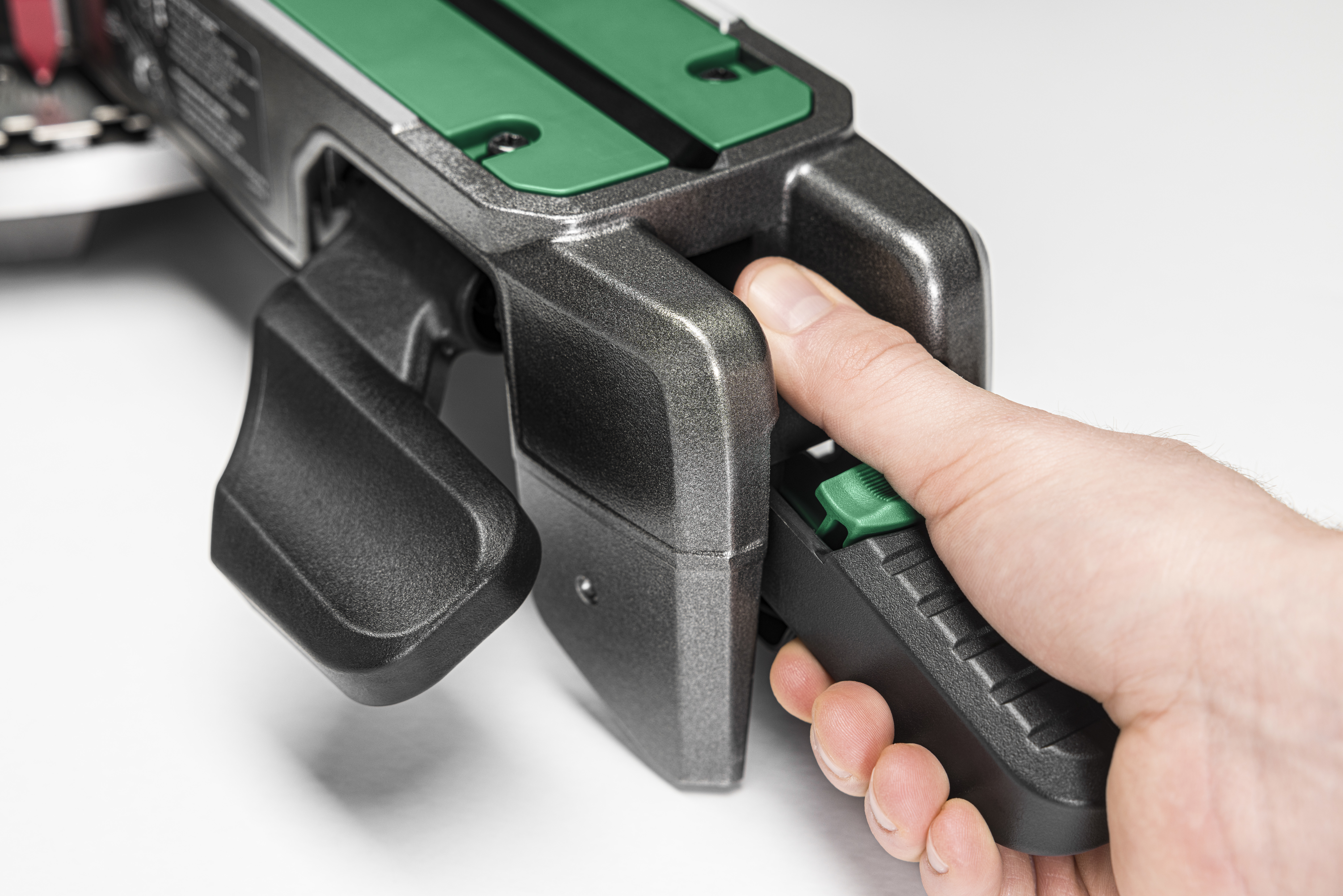 Varustettu pehmeällä käynnistyksellä ja uudentyyppisellä integroidulla LED-valolla - XACT CUT LED - joka heijastaa terän varjon työkappaleeseen leikkauslinjana