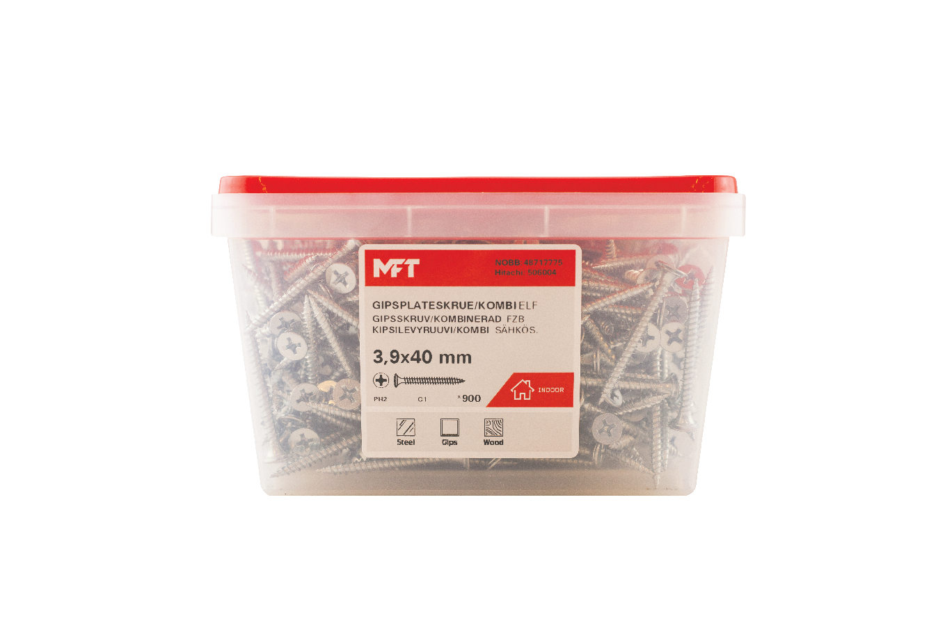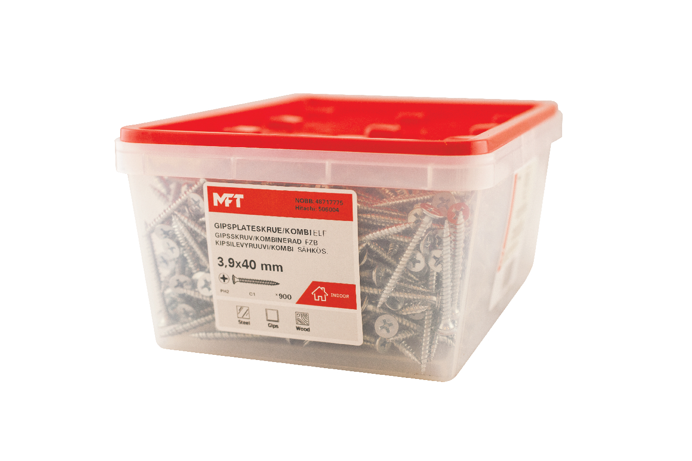 MFT-kipsilevyruuvit soveltuvat lujan kipsilevyn asennukseen puuhun ja teräsprofiileihin 1 mm saakka. Suositeltu ruuvien määrä: 20–30 kpl/m2 riippuen seinätyypistä. Sisäkäyttöön.